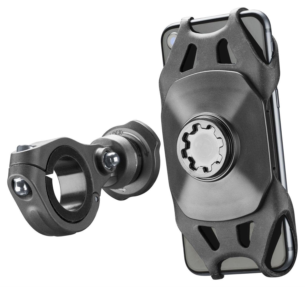Pro Bike Holder ist der starke und widerstandsfähige Lenkerhalter von Cellularline, der mit Smartphones von 4 bis 6,5 Zoll kompatibel ist.