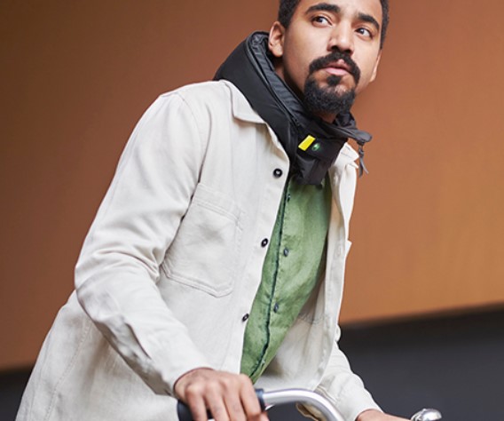 Der weltweit sicherste Kopfschutz wird wie ein Kragen um den Hals getragen. Wenn es zu einem Unfall kommt, bläst sich der Airbag auf und schützt Deinen Kopf. Wissenschaftliche Studien belegen, dass die Airbag-Technologie 8 x sicherer ist als klassische Fahrradhelme.