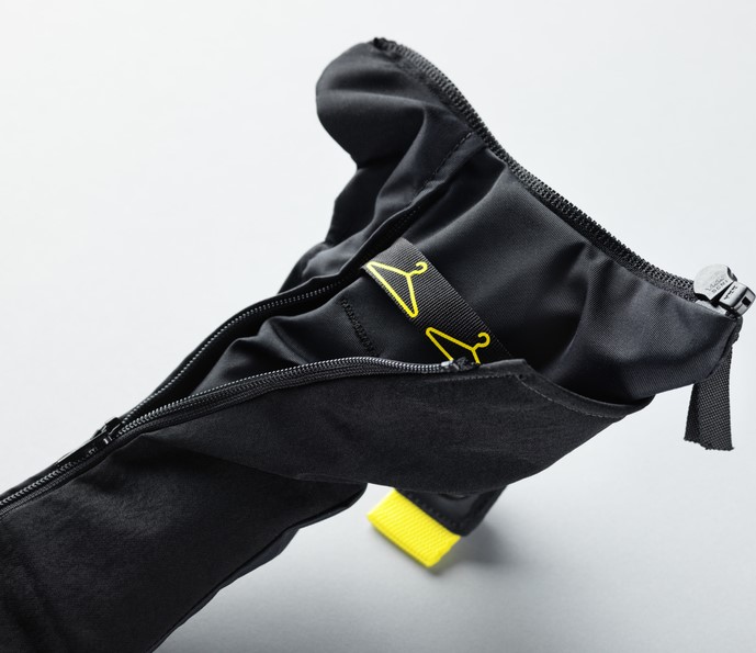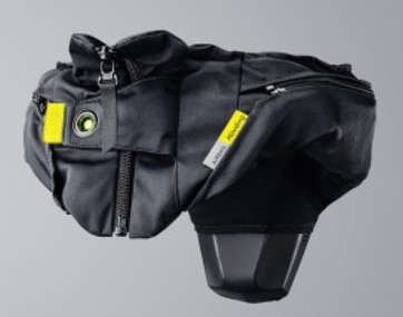 Der Kragen ist aus einem schwarzen, wasserfesten und schmutzabweisenden Material. Durch den vorderen Reißverschluss kann der Hövding leicht an- und abgelegt werden. Die Aktivierung erfolgt über die vordere Schlaufe. Im Lieferumfang Deines Hövdings ist ein schwarzer Basisüberzug, der aus einem langlebigen und funktionellem Material besteht. Dieser Überzug schützt Deinen Hövding vor Schmutz und Regen. Der Hövding sollte immer mit dem Basisüberzug oder einem der saisonalen Überzüge verwendet werden.