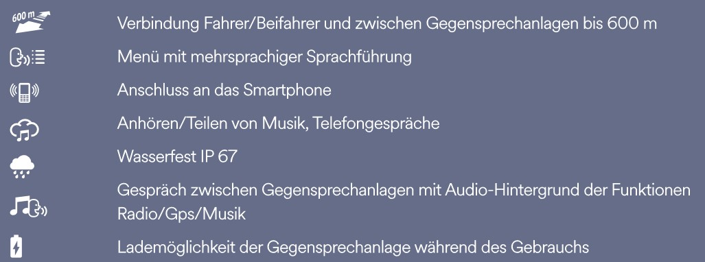 -Kommunikation Fahrer/Beifahrer und Motorrad/Motorrad bis zu 600 Meter